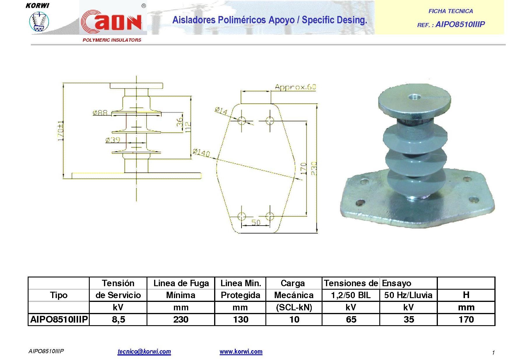 Mod. AIPO8510IIIP - Ur 8,5kV - SCL 10kN - Composite / Polimerico - Apoyo / Post |